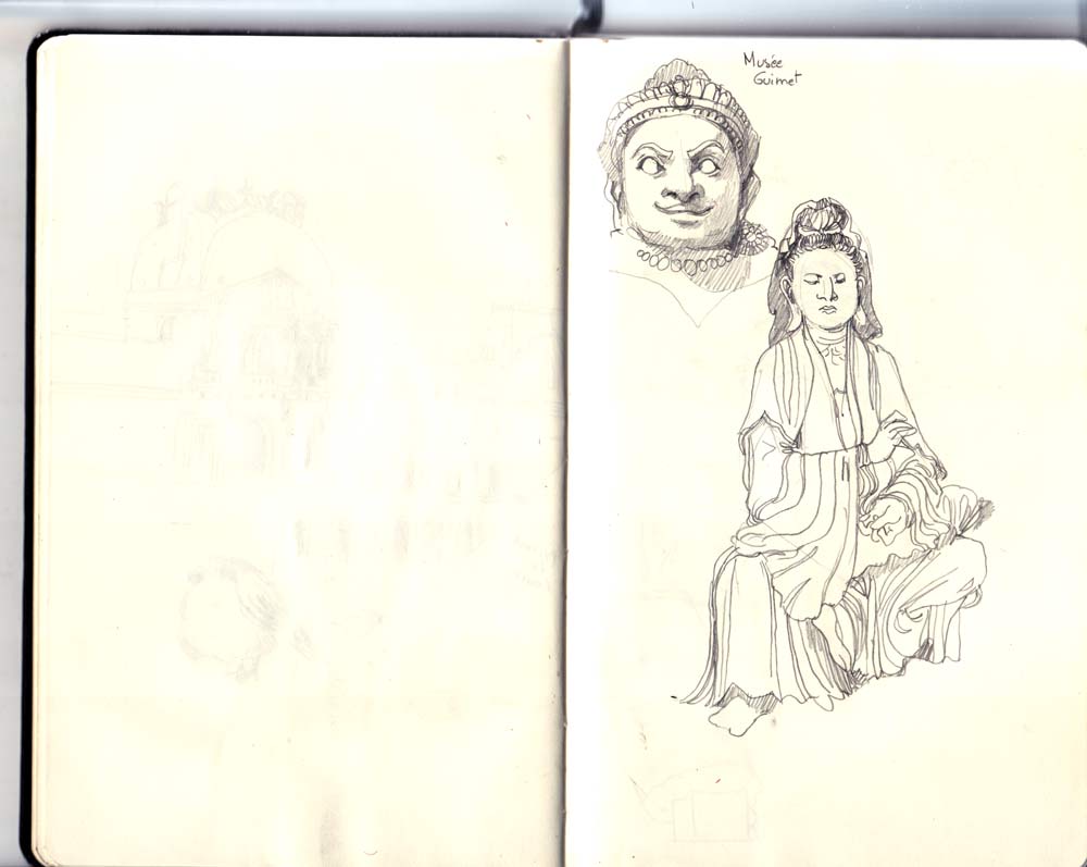 Suite et fin de ce prolifique séjour à Paris. J’ai énormément apprécié de visiter les musées du Quai Branly et Guimet. Avis aux graphistes, il y a toujours une bonne dose d’inspiration à prendre devant la statuaire khmère, tout comme devant un masque africain ou du textile turkmène, bien plus qu’en revoyant les grands classiques vus et revus du Louvre, comme une toile de maître de la Renaissance (mais ce n’est jamais du temps perdu à se mater un Rembrandt ou un Michel-Ange).
