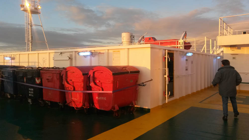 Ce cargo est devenu ma coquille, mon berceau, ma maison, de manière totale et fusionnelle. Jamais je ne me suis sentie aussi protégée que dans mon lit, dans ma cabine, dans ce cargo qui secouait dans tous les sens en plein nuit. Il me protégeait. Et je veux garder cette sensation avec moi.