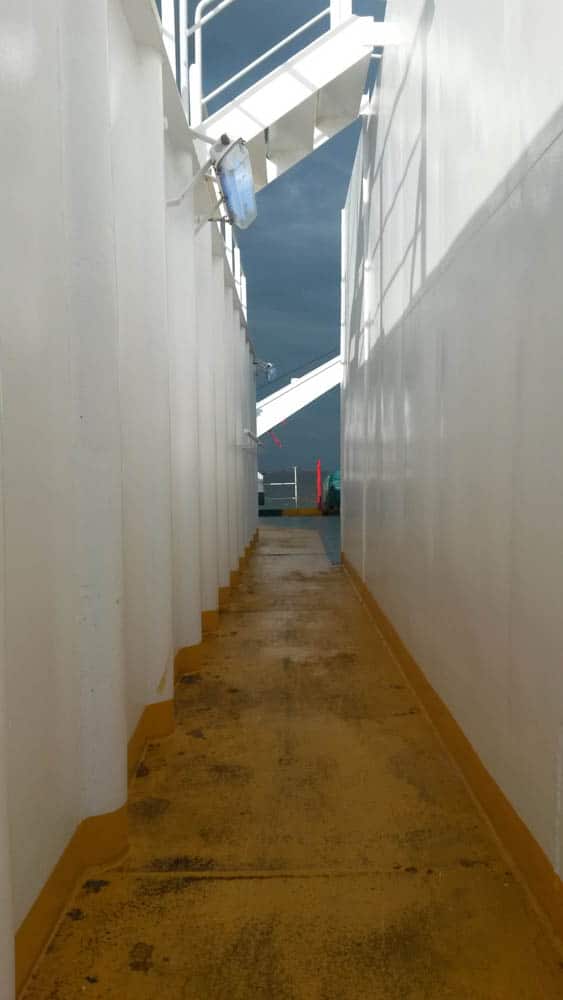 Je ne vous raconte pas cette sensation au matin du départ vers le bateau, ce mélange de surexcitation et de tension, comme droguée. J’ai eu un tel resserrement au cœur en voyant pour la première fois mon cargo, le Grande Colonia, dans le port d’Anvers, et ce serrement au cœur, je l’ai ressenti à chaque fois que je le revoyais pour y ré-embarquer à chaque escale.