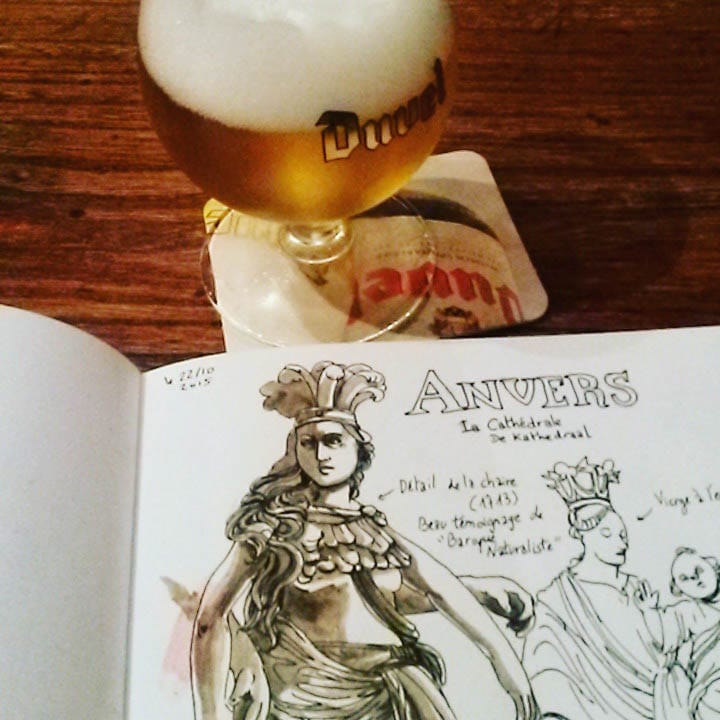 Je ne vous raconte pas cette sensation de sérénité dès le moment où j’ai foutu les pieds dans le train, ce calme qui m’a saisie alors que je débarquais dans un pays étranger dont je ne connais pas la langue, dont je ne connais pas les rues, et qu’il ne m’a fallu qu’un carnet de dessin, quelques heures de marche et une bière pour me sentir en terrain connu. Et quel bonheur au passage d’avoir su apprivoiser ma carcasse et ma solitude pour apprécier pleinement de voyager seule.