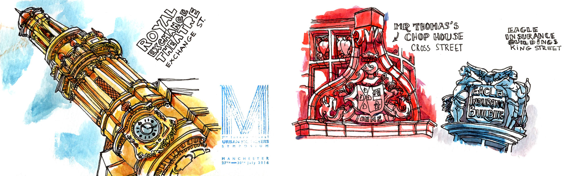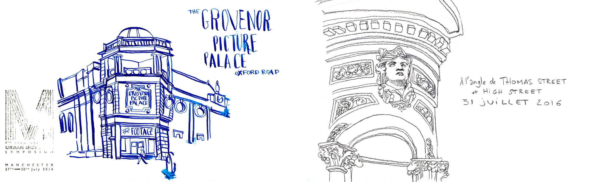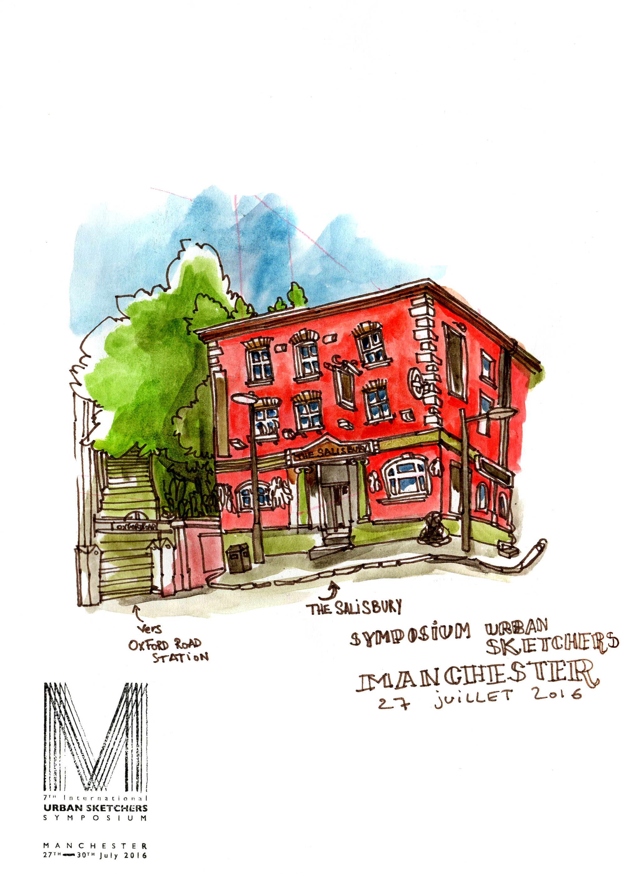 Me voilà de retour après une semaine intensive à crobarder, à Manchester, pour la 7e rencontre internationale des Urban Sketchers. Des carnettistes de tous les pays se sont retrouvés ainsi, à dessiner en long, en large et en travers, la fameuse cité de rock et de football.
