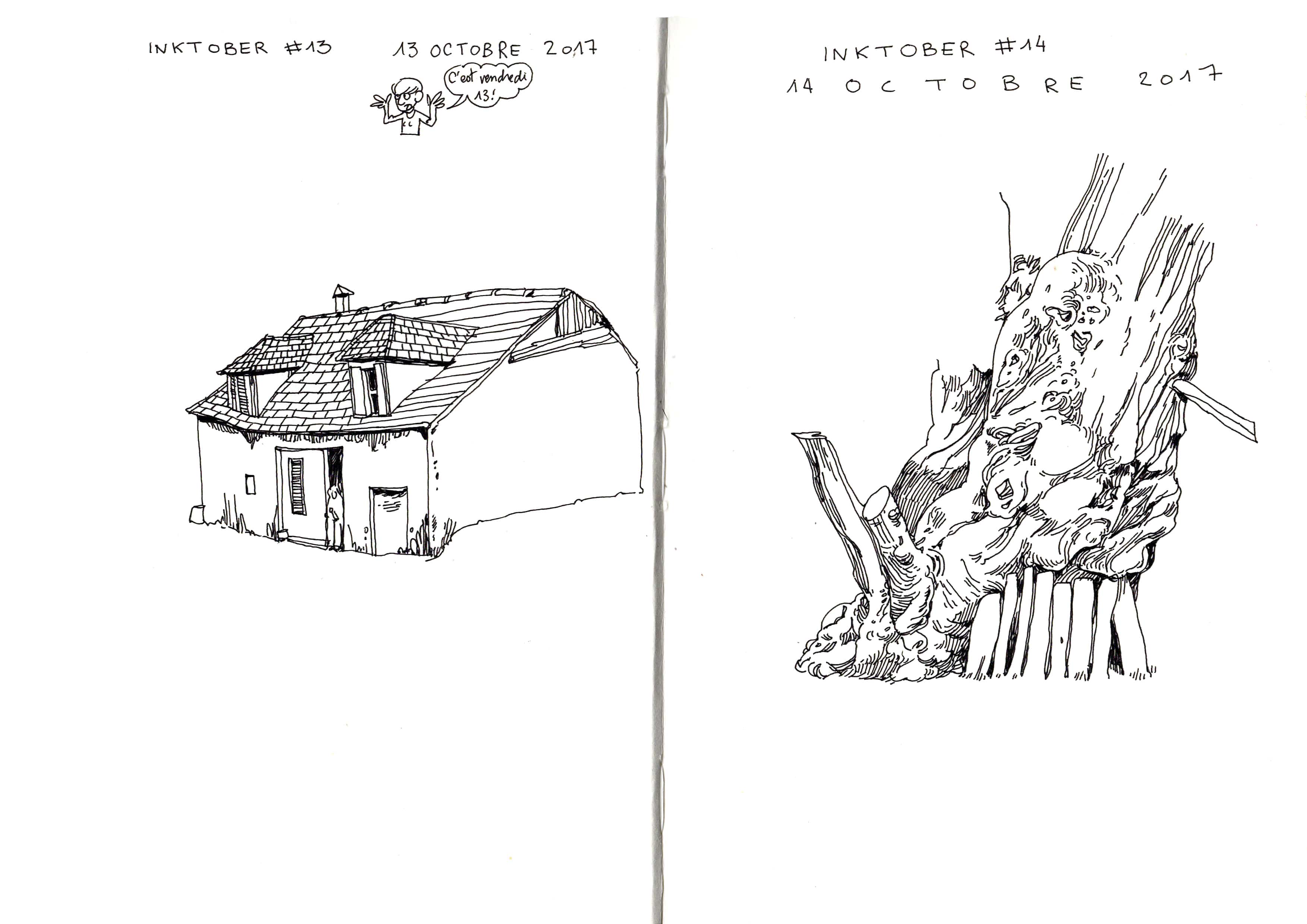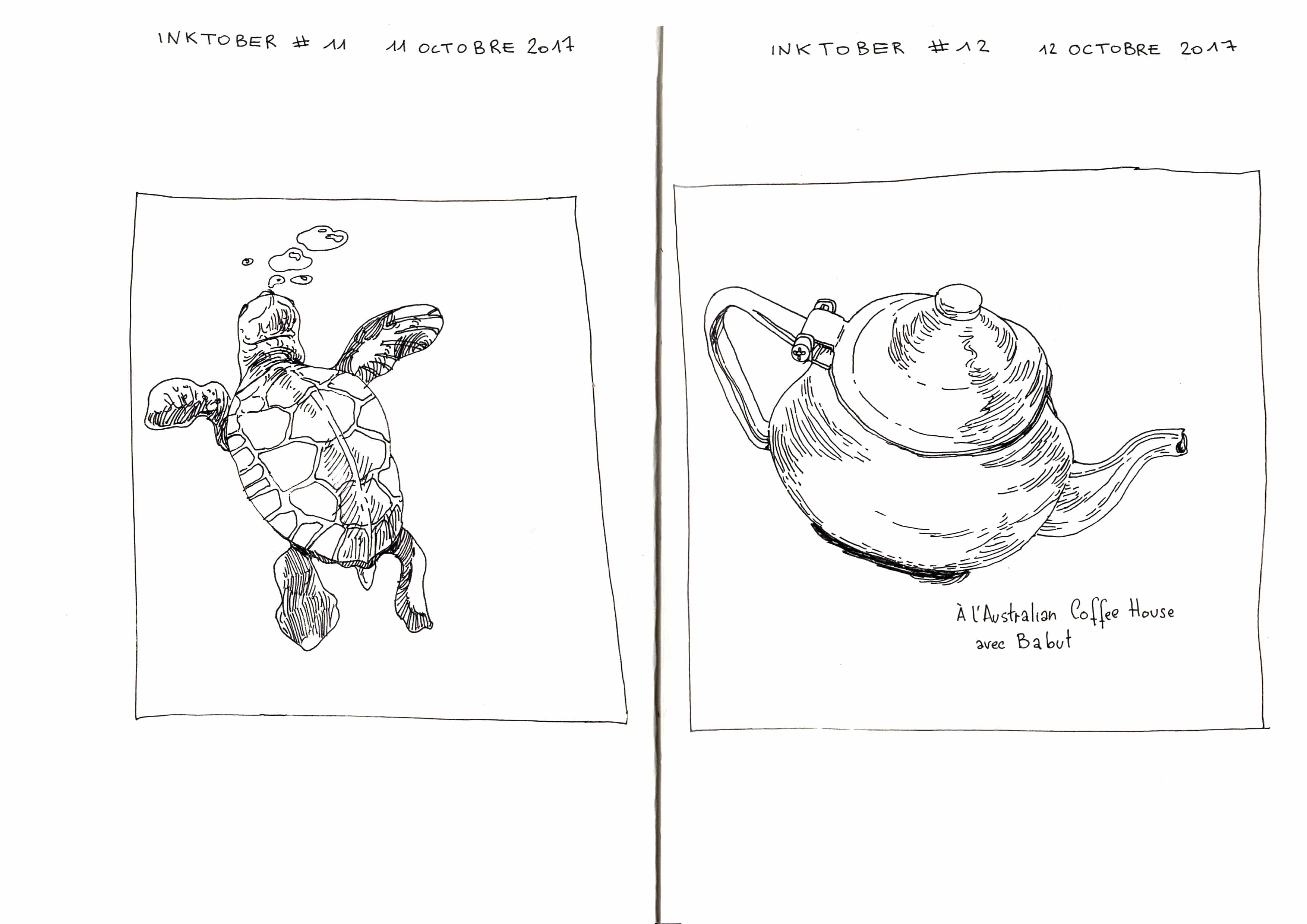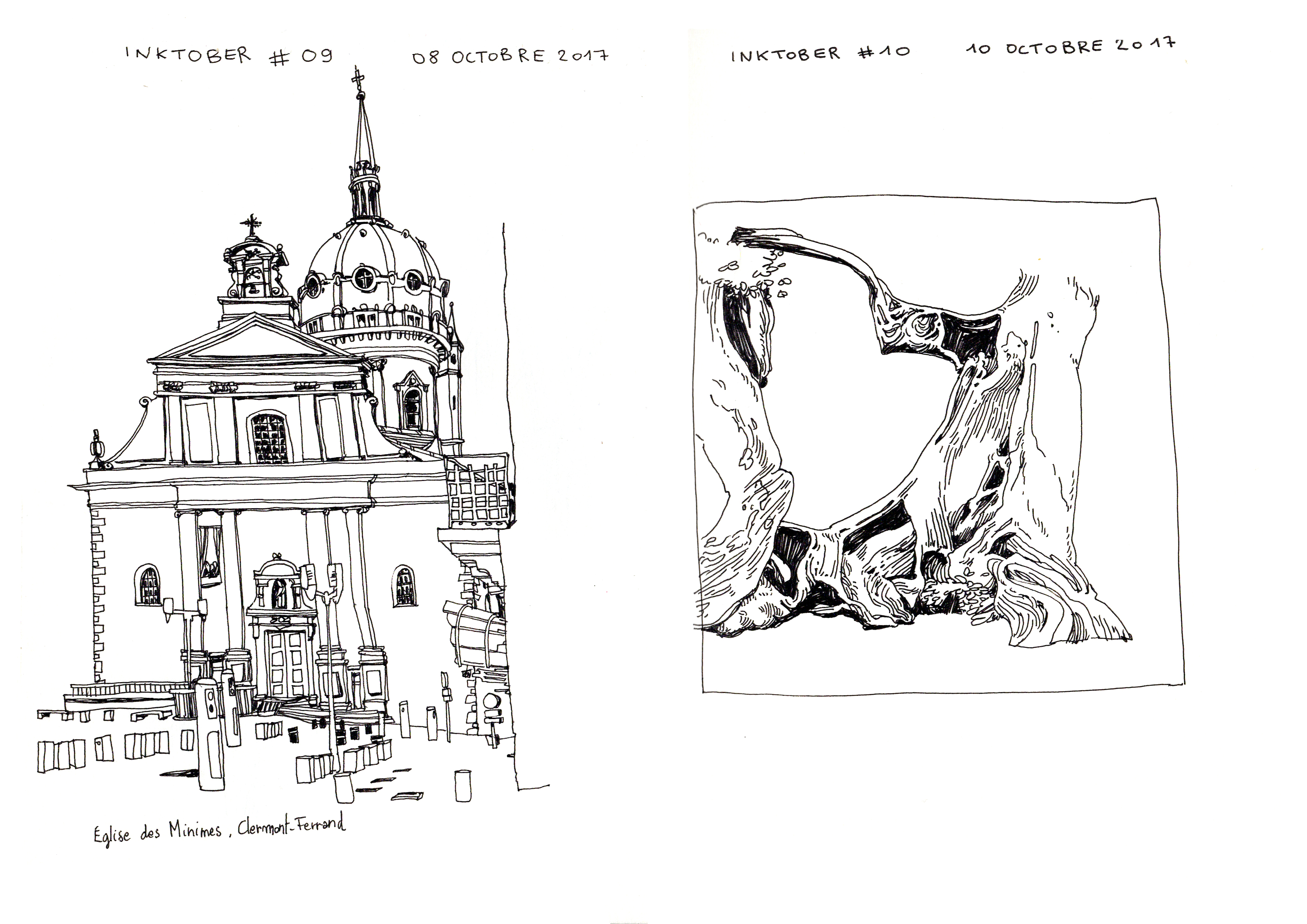 L’année dernière (comme en 2014, 2015 et 2016), je me suis lancée dans ce qui est devenu une petite tradition: le challenge Inktober. Beaucoup dépassent du but de base, en réalisant tout simplement une nouvelle illustration tous les jours du mois d’octobre. Beaucoup se sont pincés du nez en voyant affluer les dessins en couleur, en peinture ou en numérique. Un peu opposé au but de base, selon moi, où le créateur du challenge s’était donné pour but de se contraindre au dessin à l’encre, stylo ou plume, et donc sur papier traditionnel. Je reste volontairement dans cette optique, je n’ai pas de compétences particulières à affiner, je veux juste m’amuser sans être collée à un écran. Et puis après tout, peu importe le médium, tant que le défi est relevé!