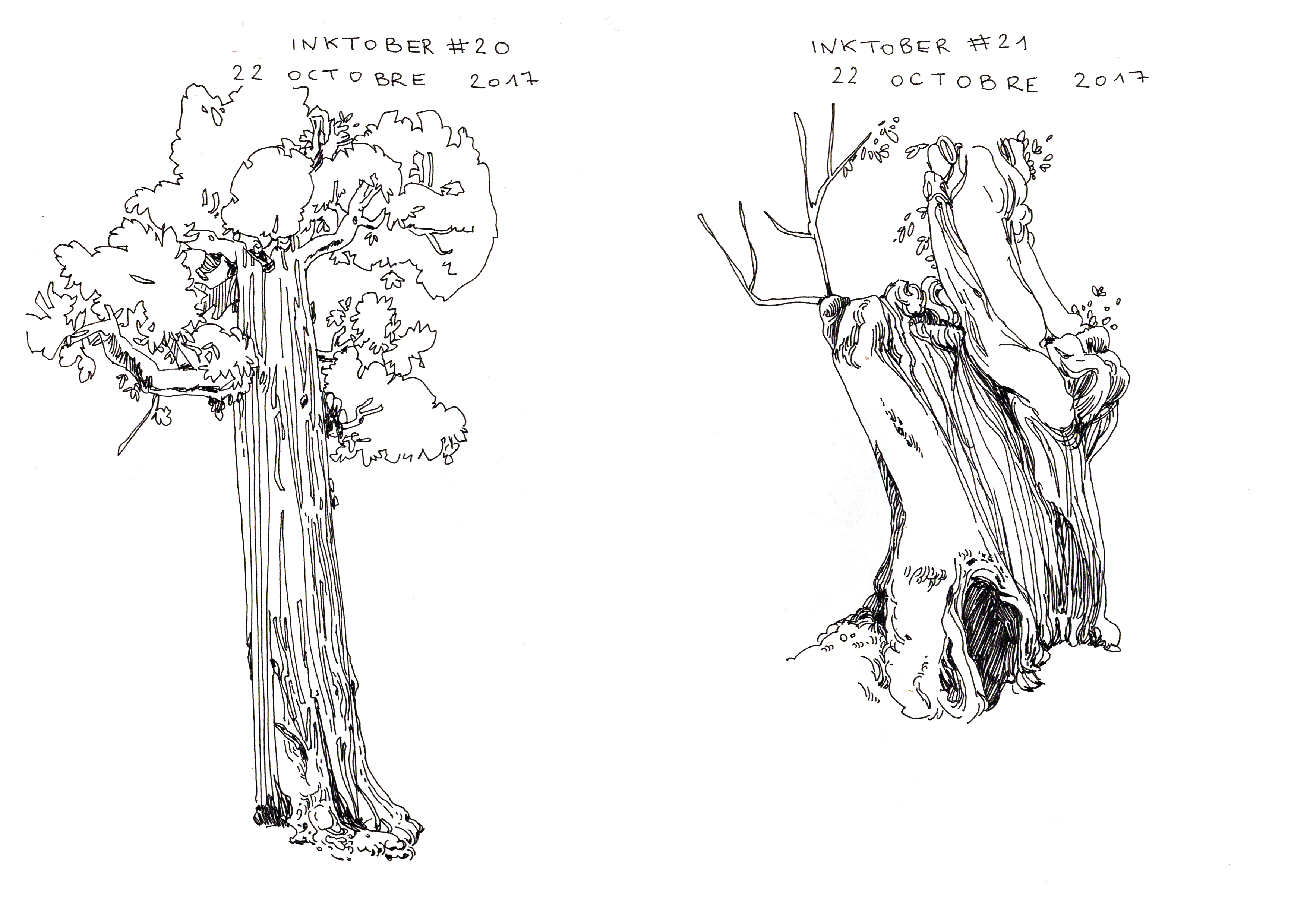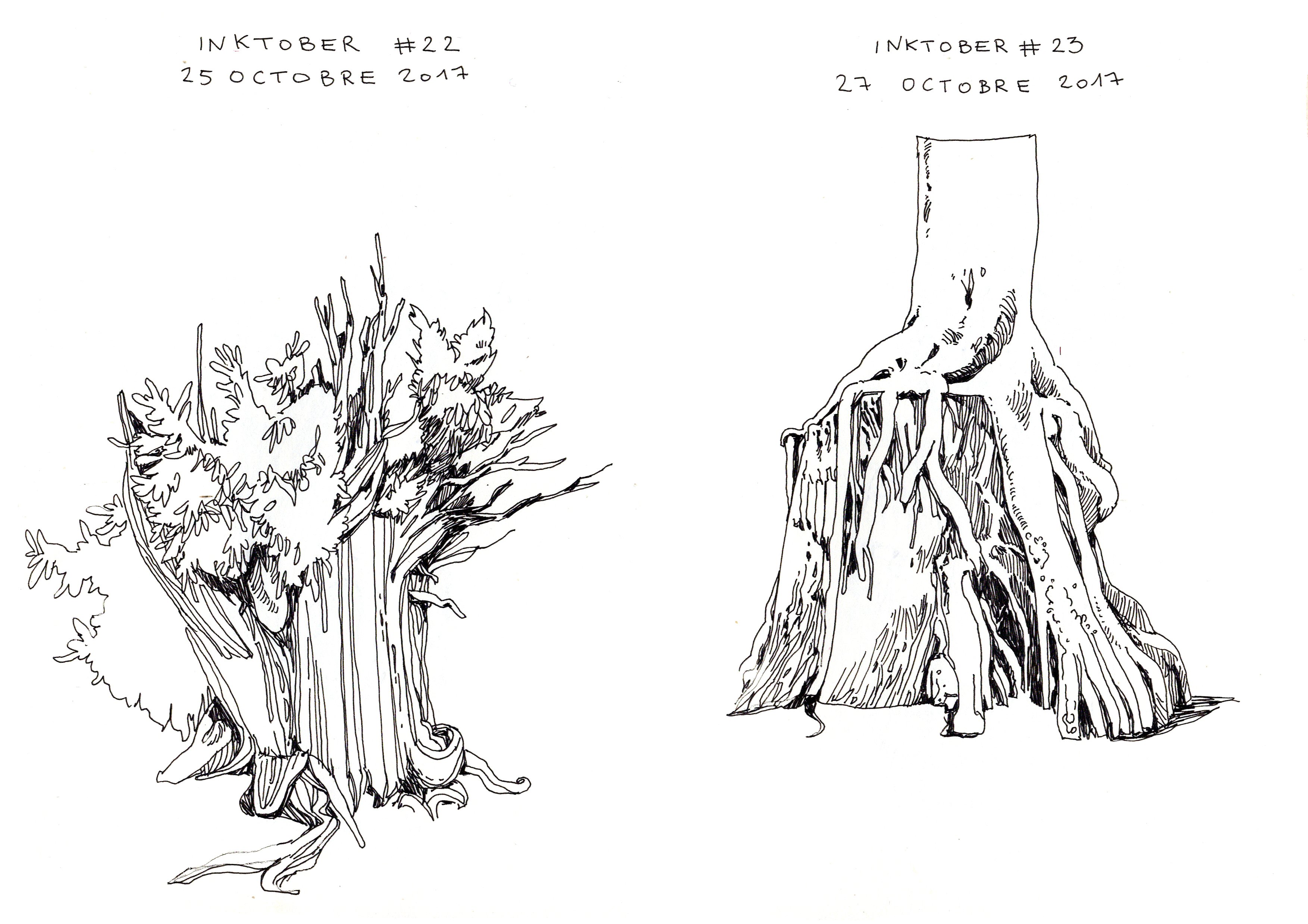 J’ai dépassé encore cette année le délai d’un mois, me disant que l’essentiel est de finir le challenge Inktober. Et puis finalement je n’en ai fait que 28, sur 31 dessins. M’arrêter si près de la fin, quel dommage…
