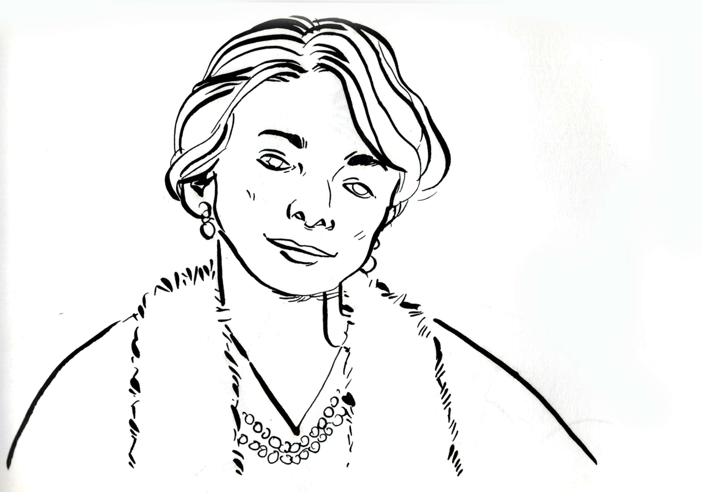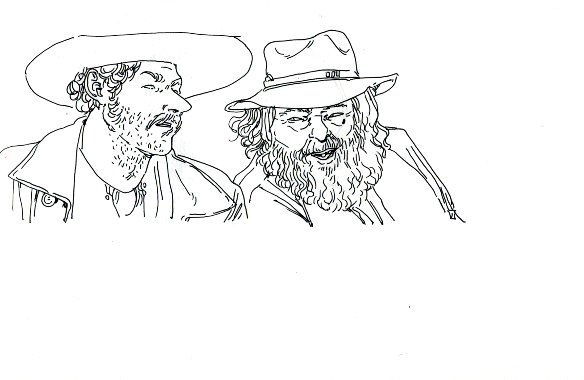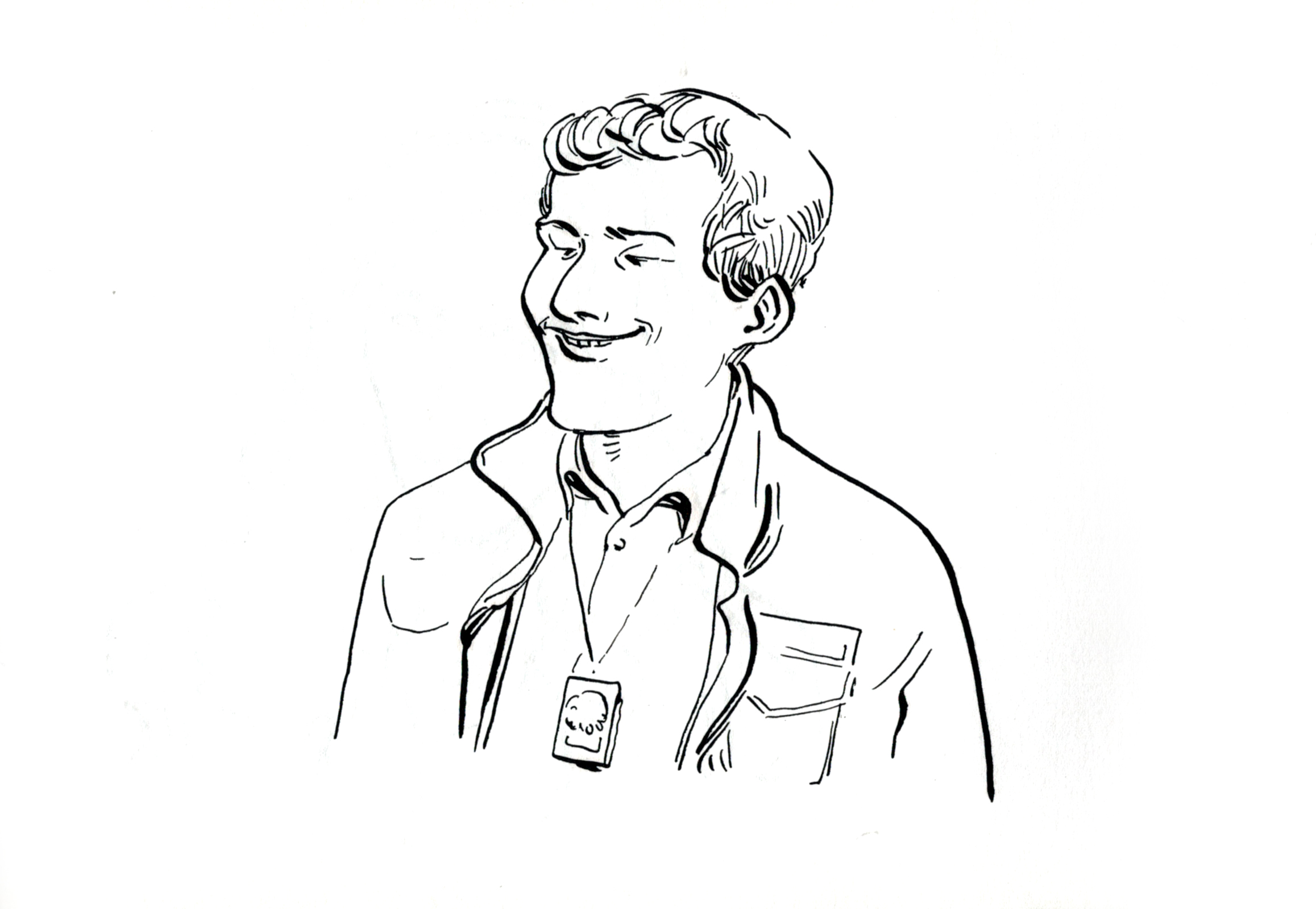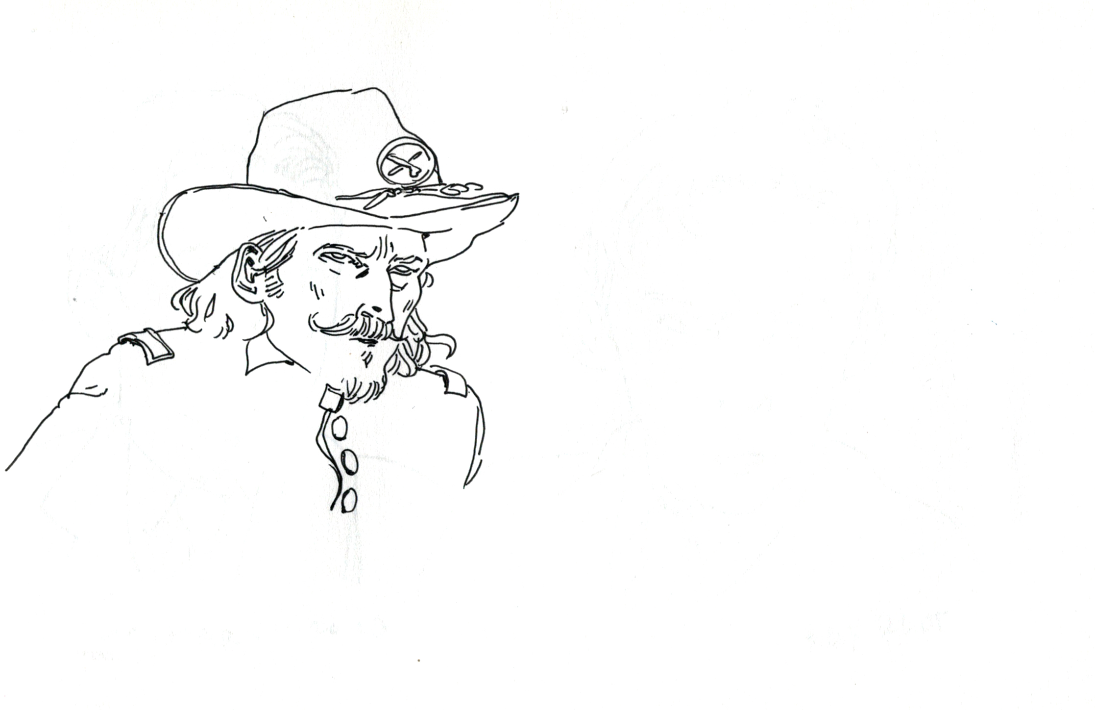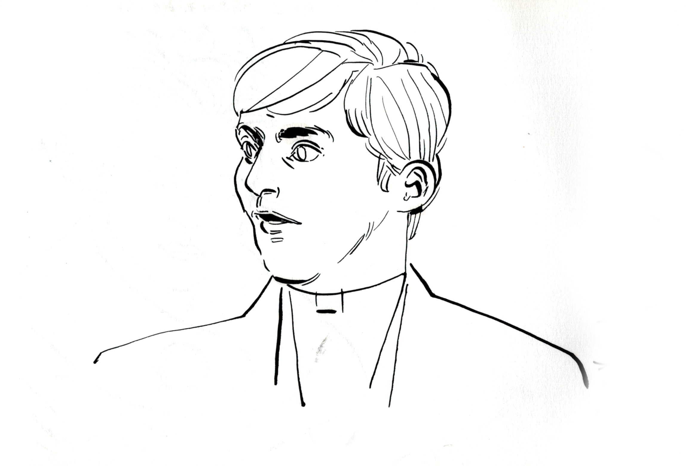 Pour ce carnet, un carnet acheté à New York par ma mère, j’avais hésité à faire cette fois une série de portraits en couleurs. Raté: le papier est très très basique, du papier machine quoi. Pour l’encre, l’aquarelle, voire les crayons de couleurs, on oublie, tout parait fadasse, quand le papier n’est pas carrément ruiné. Cela m’a laissé toute une gamme de possibilité: j’en avais un peu marre du stylo Muji 0,38mm alors j’ai mélangé les genres: stylo plume Lamy, crayon papier, stylo bille, Polychromos, Col-Erase, pour finir par une technique un peu aléatoire quand c’est raté, mais très satisfaisante quand c’est réussi, c’est-à-dire une bête plume Sergent Major avec de l’encre de Chine. On peut dire ce qu’on veut, le grattement de la plume sur le papier, et les effets de pleins et de déliés, ça fait toujours son petit effet…
