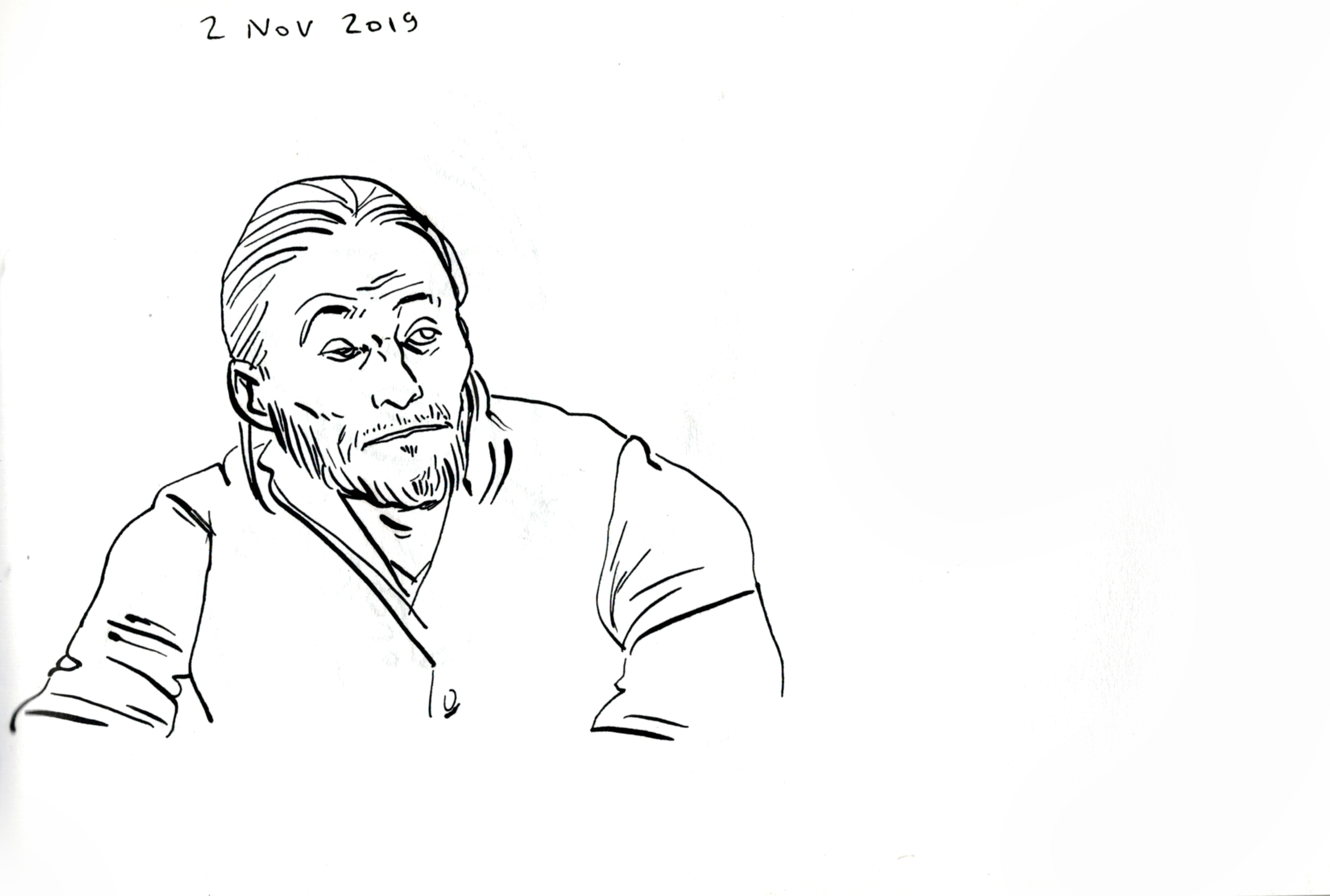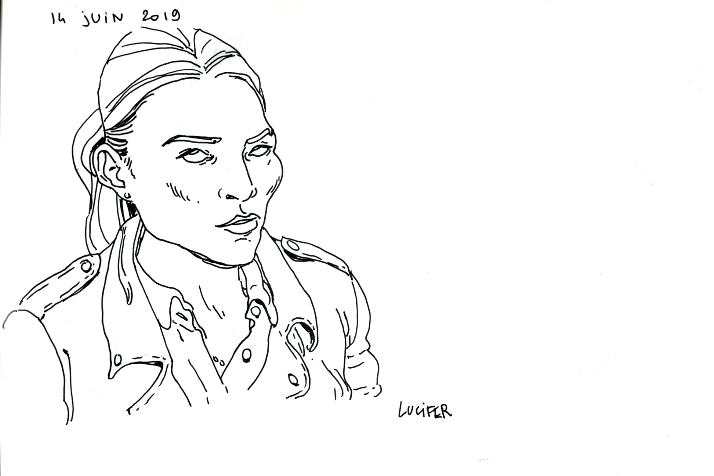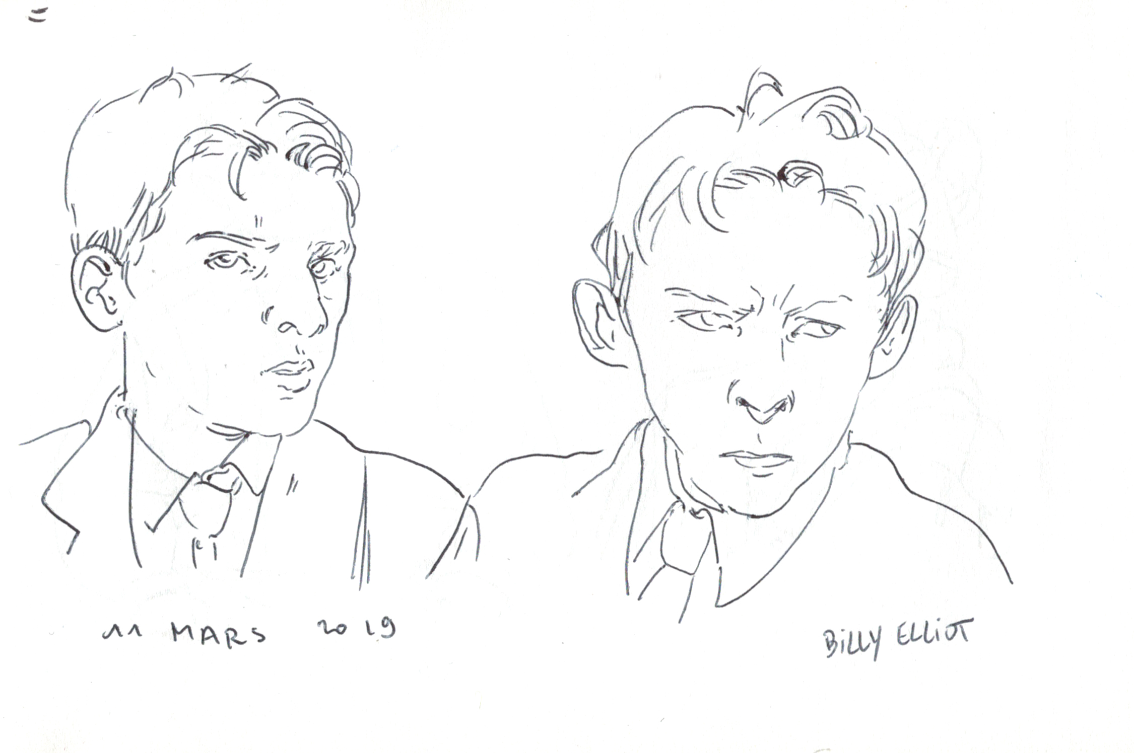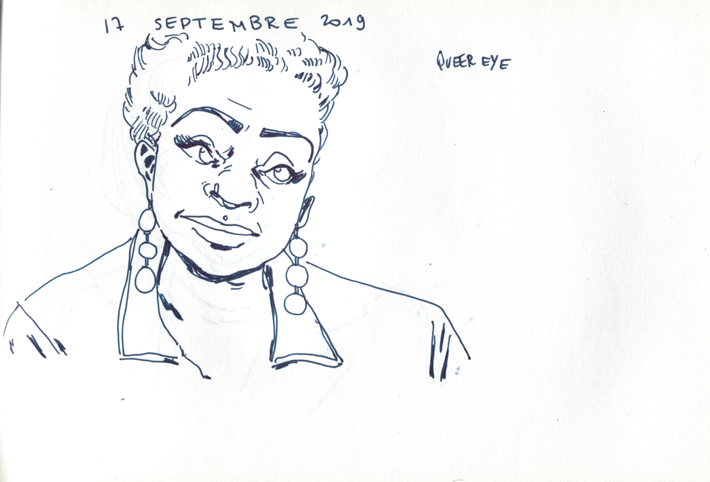 Encore un autre carnet de portraits, après le premier déjà présenté sur ce blog. Même principe: on met « pause » pendant une série (ici sur Netflix, mais n’importe quel flux vidéo, Youtube, replay ou plateforme de VOD fera l’affaire) et on crobarde pendant 10 minutes. Bon, je ne minute pas vraiment, mais l’idée y est. Le tout, c’est de s’échauffer. Cette fois je me suis carrément permis d’en dessiner pas forcément tous les jours, mais par paquets de 3 ou 4. Comme d’habitude, je me dis que beaucoup de portraits seraient davantage réussis si j’y passais plus de temps, ou du moins, ils seraient rattrapés: en ne me concentrant que sur les lignes principales j’enlève des informations, de détails, d’accessoires, de lumière, de volume, etc.