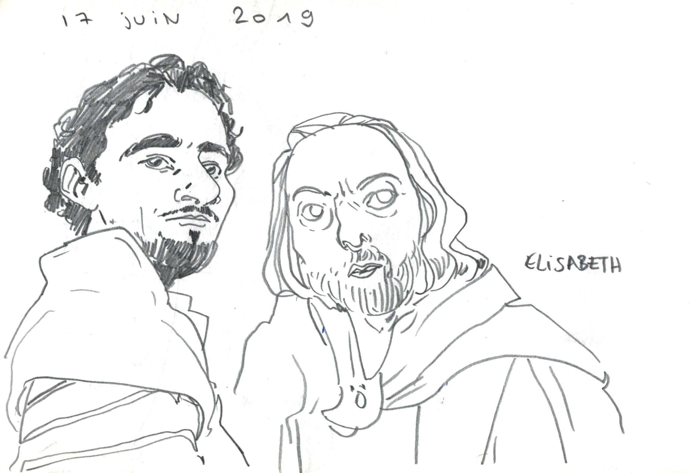 Le challenge sera de travailler différemment sur un troisième carnet, ou faire comme celui-ci, un patchwork de styles, en fonction de l’humeur du moment? Ou bien de travailler davantage les expressions corporelles, les corps, les gestes, les mains? Nous verrons bien 🙂 Le carnet est déjà tout trouvé, je vous livrerai les résultats dans quelques mois!